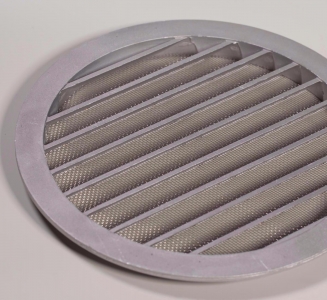 Серия РКМ. Решетки с горизонтальными наклонными жалюзи, защитной сеткой и фланцем, выполнены из алюминия. Применяются для наружного монтажа.