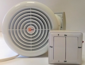 TkV-03 ПС-2 приточная с подогревателем. Регулятор скорости (2 ступени) настенный. 30 м³/ч или 100 м³/ч, 400 Вт