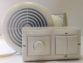 TkV-05 ПС-Пл "Сибирь" приточная с подогоревателем. Симисторный регулятор скорости (плавный), настенный. 40 - 120 м³/ч, 800 Вт (эл. Калорифер) + 46 Вт (вентилятор), встроенный термостат (менее +16ºС- вкл., более +23ºС- выкл.), обратный клапан, фильтр (угольный + G4). Минимальная толщина стены 270 мм, Ø 170 мм . Внутренняя решётка — круглая, белая