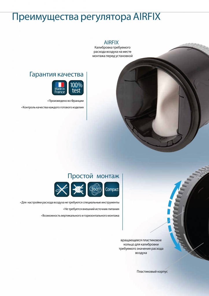 ● Продукт высокого качества. Клапан AIRFIX разработан и произведен во Франции.