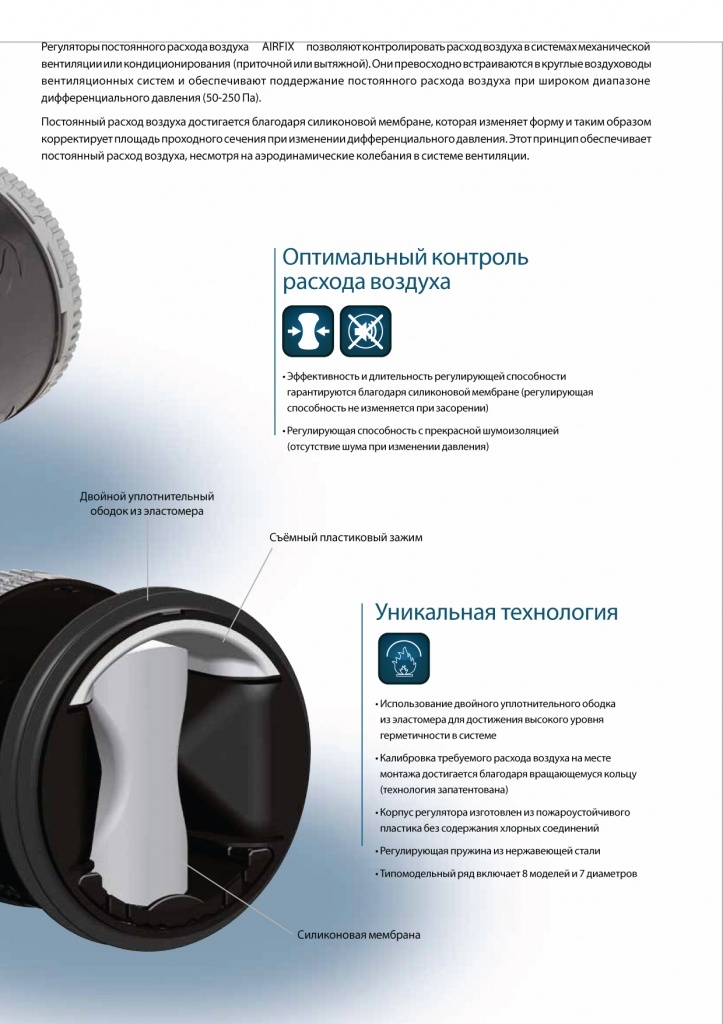 ● Задачей клапана AIRFIX является постоянный контроль расхода воздуха в системе вентиляции.