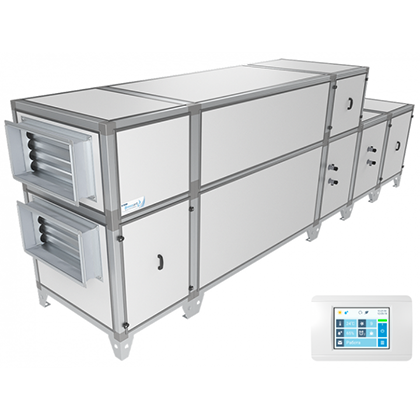 • Приточно-вытяжная установка напольного типа с противоточным пластинчатым рекуператором, системоа защиты от замерзания.
