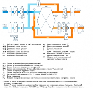 • Управление увлажнителем воздуха с пульта вентустановки.