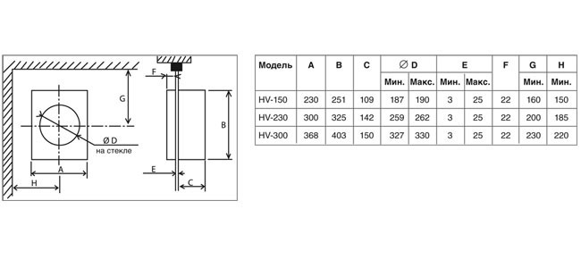 Вентиляторы серии HV-STYLVENT предназначены для установки на окно или стеновую панель толщиной от 3 мм до 25 мм.