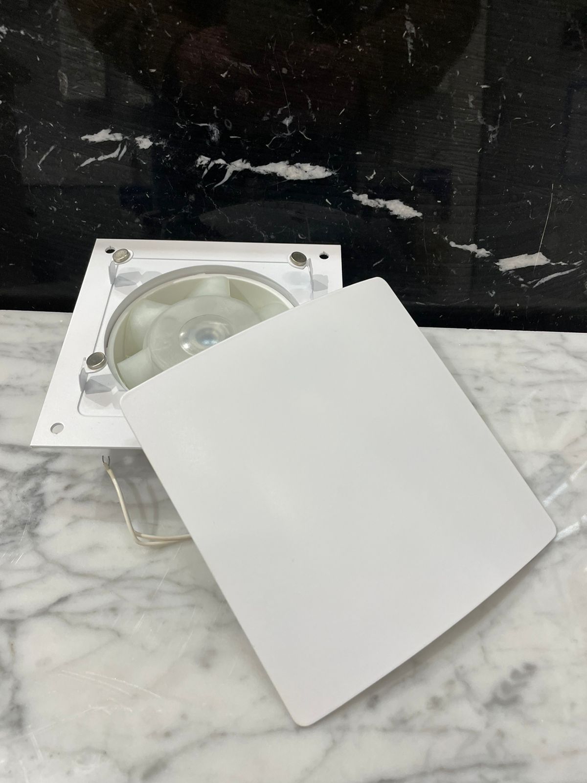 Тонкий бесшумный вытяжной вентилятор для ванной квадратный Mmotors ММC 100 K белый