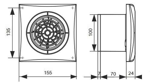 Укороченный фланец – позволит установить вентилятор в вентиляционную шахту или присоединить к воздуховоду Ø100, 125 мм.