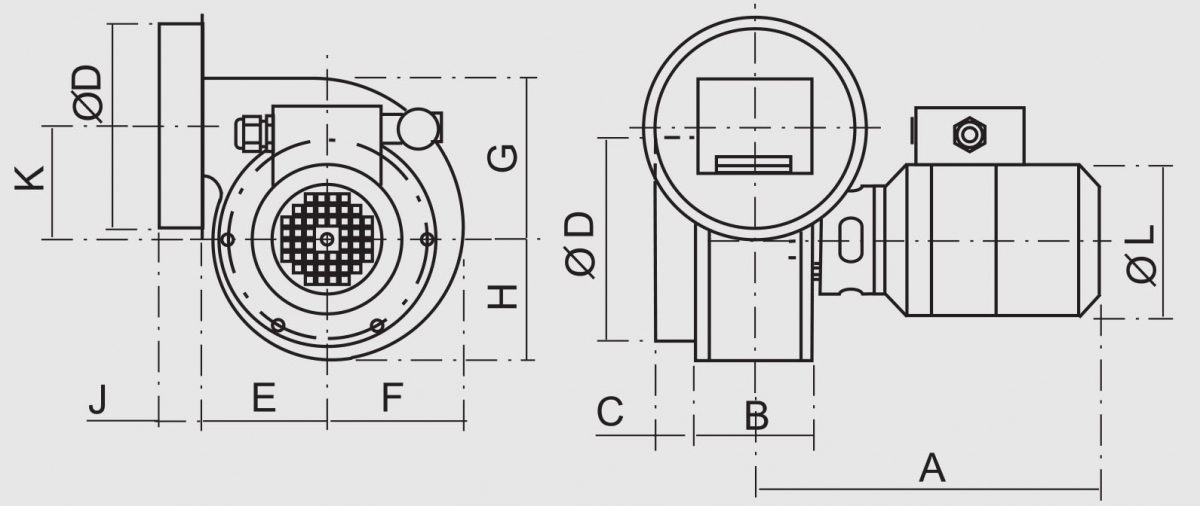 Корпус вентилятора выполнен из нержавеющей стали AISI 430 толщиной 0.8 мм. При изготовлении данного вентилятора использован внешний асинхронный двигатель. Двигатель расположен на расстоянии (на штоке) от рабочей поверхности, дополнительно оснащён крыльчаткой обдува и термоконтактом, что позволяет избегать его перегрева.