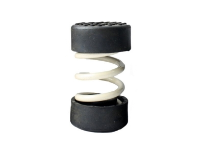 Стальные виброизоляторы представляют собой два основания с резиновыми или пробковыми накладками, между которыми размещена пружина.